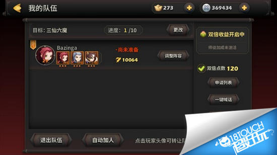 开启条件:三人组队开启。注意一定要点双倍点数,开启双倍收益。(双倍点数每周六更新180点,每次三仙六魔任务消耗2点。)
