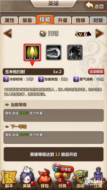 英雄等级的提升可以直接升级第一个技能,技能等级跟英雄等级挂钩。