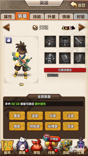 装备可以通过强化升星来提升属性。另外多件同门派的装备可激活额外属性。