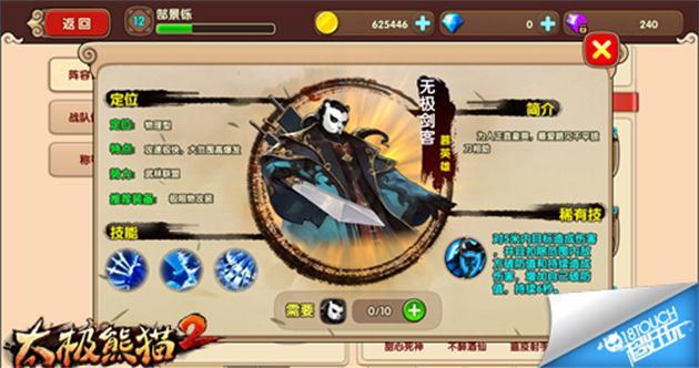 武林中从不缺剑客,但是能达到人剑合一,御剑伤敌的剑客,是非常罕见的。无极剑客继承了前作中犀利快速的剑法,同时还能运用剑阵,技能范围大伤害爆发高,堪称《太极熊猫2》中最神秘最强大的英雄之一,这么强力还需要定位?