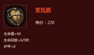 你没看错,这里就是索瓦盾。虽然蕾娜斯还算是个法师类的英雄,但是辅助的定位让她对生命值的属性更需要。前期本来很脆皮的蕾娜斯需要一件索瓦盾来撑血量。