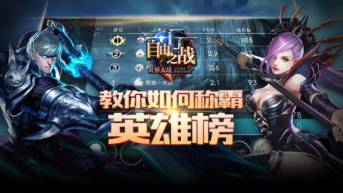 5.英雄榜的排名首先比的就是战斗力,战斗力高的靠前,战5渣只能萌萌哒;如果战斗力相同,则比较KDA(越高越靠前);如果KDA也相同就比较哪位大神的胜场数更多!