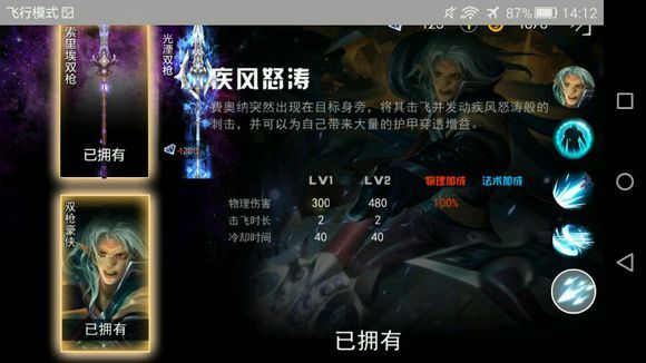 大招(疾风怒涛):费奥纳突然出现在目标身旁,将其击飞并发动疾风怒涛般的刺击,并可以为自己带来大量的护甲穿透增益