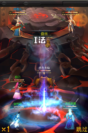 3)站位:虎力大仙站中间,妲己站右边前排(炮灰),主角站右边后排,太白站到左边(炮灰)。