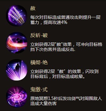 赦:这个技能可以为他带来很高的攻击速度,增加的攻速无形中让玩家们在对战中能够造成更多次的杀伤,是一个非常实用的技能。