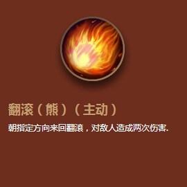 【主动-翻滚(熊)】:向指定方向来回翻滚,对敌人造成两次伤害,并眩晕。