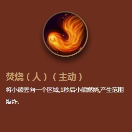 【主动-焚烧】:将小熊扔向一个区域,一秒后小熊燃烧,产生范围爆炸