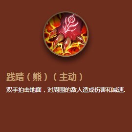 【主动-践踏(熊)】:双手拍击地面,对周围的敌人造成伤害和减速
