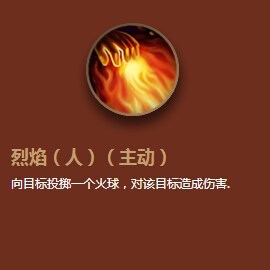 【主动-烈焰】:向目标投掷一个火球,对目标造成伤害