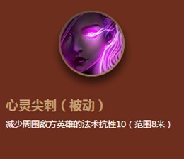 心灵尖刺:减少周围敌方英雄的法术抗性10(范围8米)