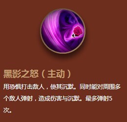 小编点评:这个技能多少有一定的运气成分,为什么呢?因为暗鸦的弹射是随机的,如果敌人只有一个英雄和小兵的情况下能弹到英雄身上多少下就是运气问题了,当然肯定是可以打到一下的(对着英雄释放技能)。这个技能简直是野外团战的神技,一个暗鸦放过去在敌方英雄间弹来弹去,不仅伤害很足沉默效果更是让敌人欲哭无泪,束手待毙。