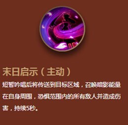 末日预兆:吟唱1.5秒后传送至目标区域,召唤一大群食人鸦盘旋在周围,对范围内的所有敌人造成恐惧和持续性伤害。