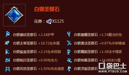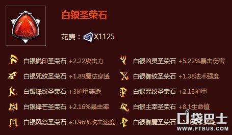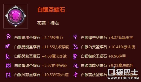 自由之战新英雄法鲁克圣石怎么选择?自由之战新英雄法鲁克出什么圣石好?接下来小编将为您详细介绍即将登场的新英雄法鲁克圣石选择的介绍,希望能对您有所帮助。 圣石推荐: 3个:白银咒纹圣荣石+2.13护甲 3个:白银主宰圣银石+18.72生命值 3个:白银御魔圣莉石+3.12魔法抗性 1个:白银御纹圣耀石+9.96护甲 综合: 16.35护甲 6.36魔法抗性 56.16生命值 以上就是口袋巴士小编为您带来的自由之战新英雄法鲁克圣石选择的介绍,更多精彩内容请继续关注 口..