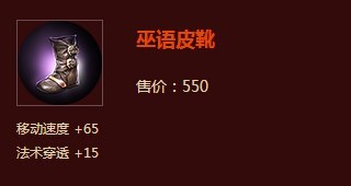 巫语皮靴+苦难面罩(合成死亡假面)+能量宝石(合成圣神使之柱)+湮灭之帽