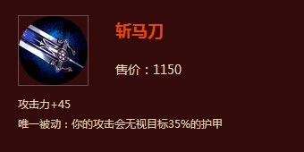 护甲穿透效果是后期物理输出英雄的必选装备。斩马刀可以让对面的坦克英雄出的肉装效果大打折扣。