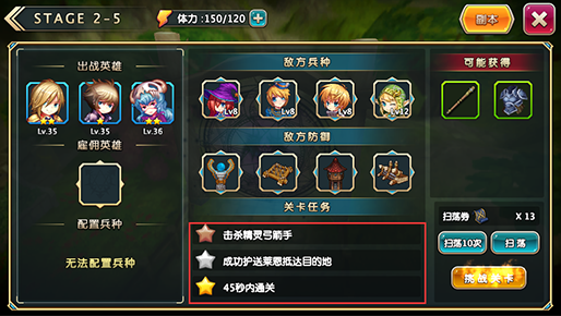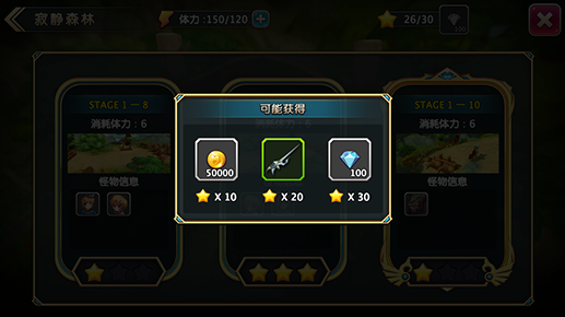 评星等级带有一定的挑战性,考验的不仅是冒险者对关卡战斗的熟悉,更是技巧。让关卡变得更加紧张刺激。如果你实在拿不到全部星数,不要急,请速速升级提升战斗力,之后再回来挑战吧。