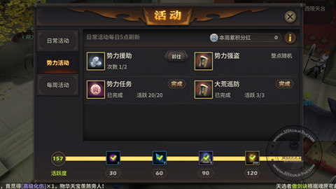 势力强盗是整点随机出现的活动,每天整点时在势力驻地蹲点,幸运的话能够获得经验等奖励;