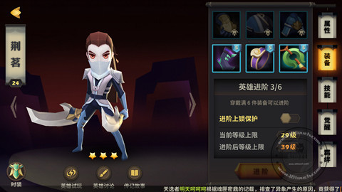 非常常见的卡牌培养方式,前期剧情副本会掉落大量的装备,英雄升到9级时装备6个格子都满后就可以进阶突破等级上限继续升级;