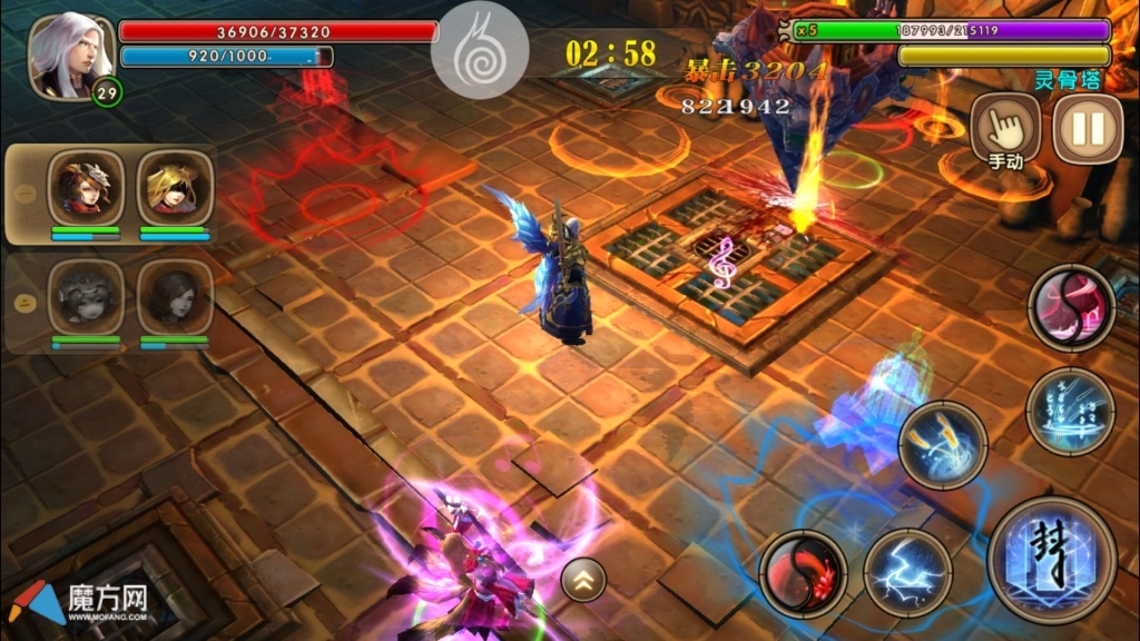 而这一关想要满星通关其实也不是很难,这一关虽然小怪出现的很慢但是还算可以的是他们并不是很分散,而且打BOSS是非常的省时间,地陵左殿的BOSS是灵骨塔所以他是不动的,他会召唤各种小怪来进行攻击,而且BOSS出现的时候面前还会出现两个圈,一个红色一个蓝色,经过小编的多次刷图红色是加血这个可以确定的,而蓝色则是随机的,有的时候走进蓝色的圈那该带来的效果就和炸弹一样,瞬间让BOSS瞬间就掉很多的血量,而且最好是第一时间就走进篮圈,不然后面再进去的话好像对BOSS的效果就不明显了。