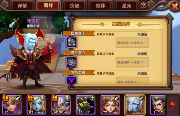 玩家只需把该英雄嗦需要的装备佩戴在英雄身上,就能激活额外的羁绊属性,能让英雄获得装备本身属性之外的额外属性,提升英雄的各方面能力。