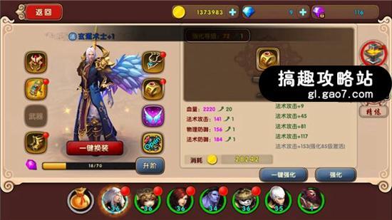 其次就是装备了,一个英雄6件装备,强化和精炼(少)都需要大量的金币,一件22品的装备强化到72级需要花费44w金币。