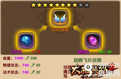 1、翅膀精炼需要消耗不同数量的飞升石和精炼石;