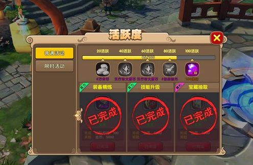 活跃度是可以让我们获得奖励的一个系统,每天活跃度最多获得100点,达到20点以后就可以获得对应栏目的活跃度奖励。