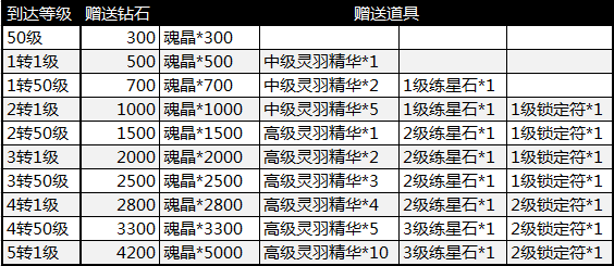 福利4等级奖励:在游戏中达到指定等级即可领取包括大量传说级装备和钻石在内的奖励,等级越高,奖励越好。