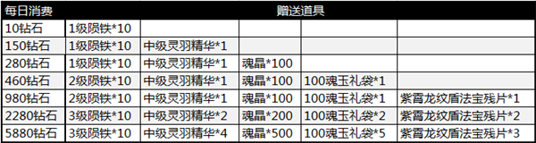活动期间,每天消费达到一定钻石,超值道具等你来领: