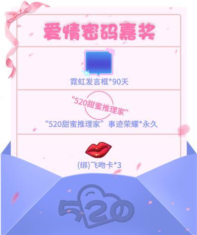 爱情密码嘉奖:在活动期间成功输入正确答案的玩家,都可以获得爱情密码的嘉奖!