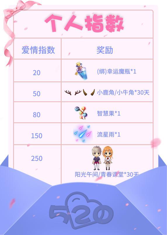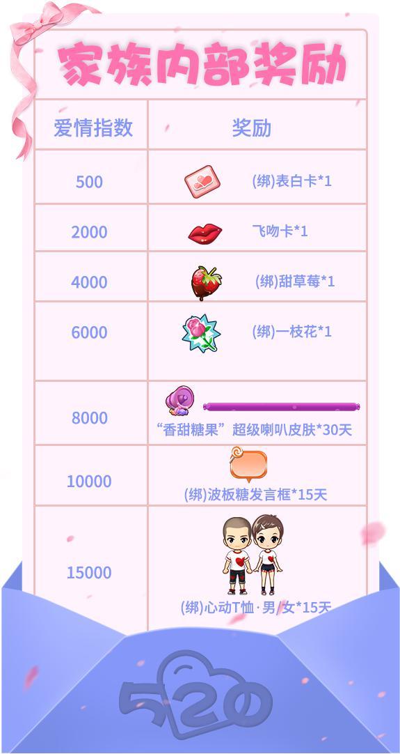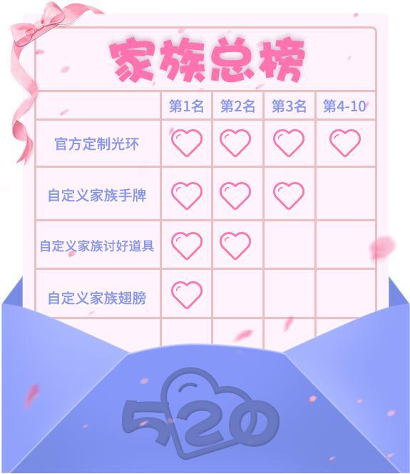 在活动结束后,“爱情指数”最高的前十名家族可为家族赢得奖励: