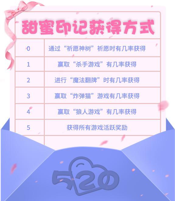 如果你想问我有什么数字能代表我此刻的想法,那一定是“5201314”了!在活动期间,六种甜蜜印记(0,1,2,3,4,5)加入推理之都!您可以通过收集这些印记来达成奖励领取条件。