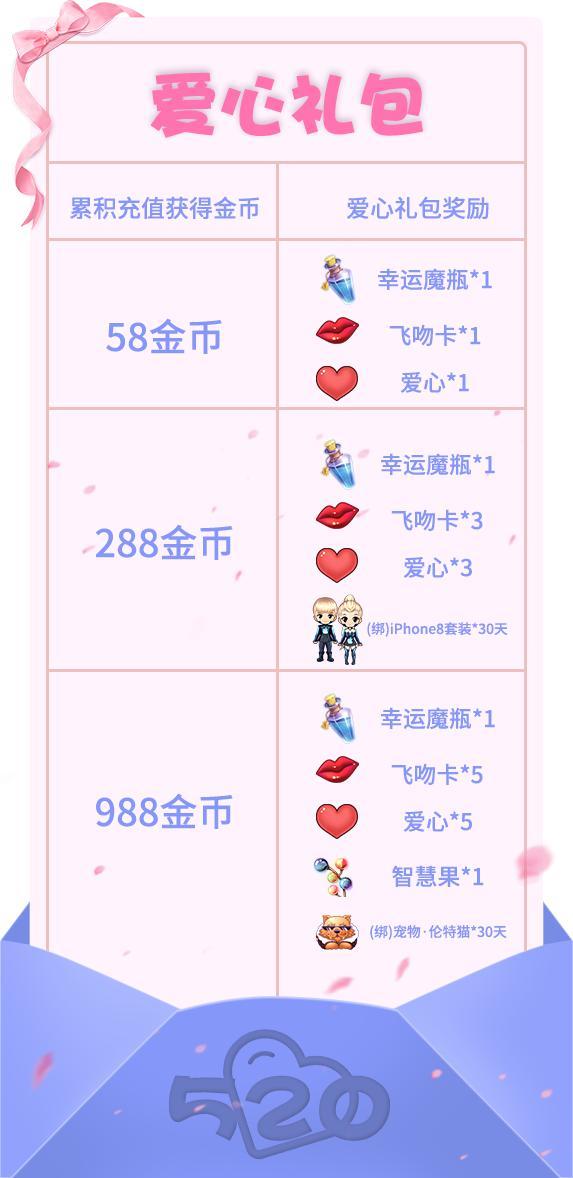 2. 爱心礼包奖励每日重置,已获得的“爱心”不会清零;