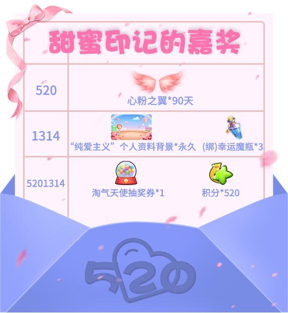1. “520、1314、5201314”每种奖励在活动期间至多领取一次,领取之后印记将消失;