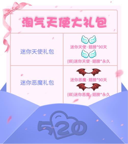 淘气天使大礼包:在活动结束后,将从拥有淘气天使抽奖券的玩家中抽取5位幸运玩家,赠送“迷你天使”礼包;抽取5位幸运玩家赠送“迷你恶魔”礼包。