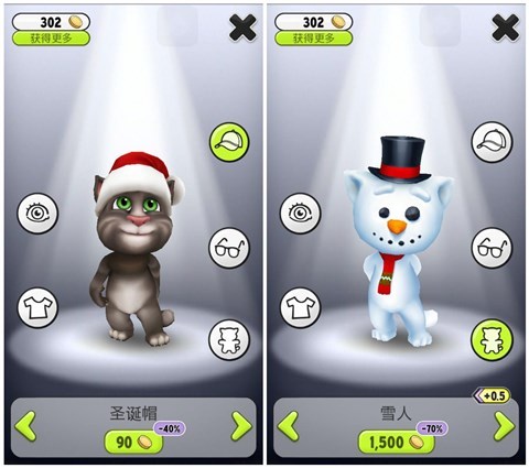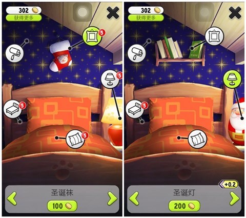 为了迎接圣诞节的到来,《我的汤姆猫》推出全新圣诞应季优惠:雪人外套、圣诞帽、树帽、白毛、节假日优惠,另外还有圣诞老人台灯、圣诞袜墙饰、圣诞寝具等充满节日气氛的室内装饰,各种爽购乐翻天,快来打扮你的汤姆..