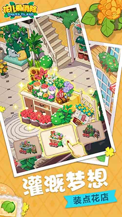 经营海岛花店,打造梦幻花世界! 除了全新的消除玩法,《花儿爱消除》还为你带来了丰富的经营玩法。在游戏中,你将亲自经营一家海岛花店,这里的一切都由你来做主。随心所欲装修你的花店,摆放家居,装饰鲜花,养一只可爱的萌宠,一切按你梦中的样子打造完美花店。