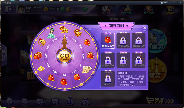 首先映入眼帘的是我们的抽奖大转盘,每人每天都拥有一次抽奖机会。奖品为游戏币和各类服装道具。但是,只要细心关注,就会发现我们有时会放入大奖品噢!