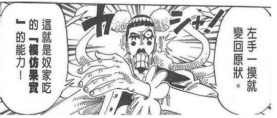 最实用的果实:模仿果实 虽然在剧中MR.2的“模仿果实”并不是非常厉害,但也起到很大的作用,两次拯救路飞!“模仿果实”并不是战斗专用,而应该是三次元中的圣物啊!这等好东西,要是搁在现实生活中,也绝对是要万人哄抢啊!