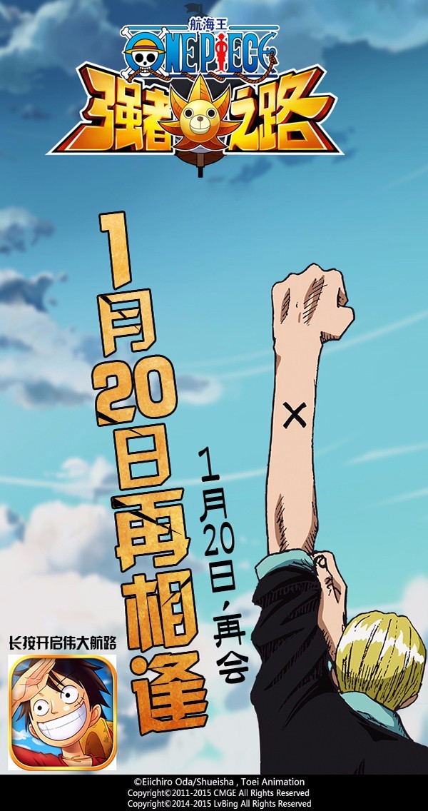 东映动画官方正版授权的“ONE PIECE ”题材手游《航海王强者之路》即将在1月20日正式上线!《航海王强者之路》是由东映动画官方授权的“ONE PIECE”题材手游。以大受欢迎的人气动画《航海王》为游戏蓝本,还原动画的精彩情节与独特的人物设定。经典动画题材结合经典手游玩法,开启双经典模式的《航海王强者之路》,即将引爆2016年超高人气《航海王》题材手游新番!