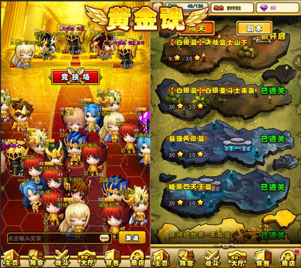 向经典致敬 最萌手游燃爆登场 “萌,即是正义!萌,即是治愈!萌,即是王道!” 《黄金魂》正是秉承着这三大理念,将众多动漫迷们的男神女神,化作三头身Q版圣斗士,坚持最纯正的日系热血风,给所有玩家带来一股“萌并燃”的手游新风! 除了萌值高之外,简单便捷的上手操作、丰富庞大的任务系统、激情热血的冒险闯关竞技、创新好玩的策略组队玩法,以及经典Q版男神女神的鼎力加盟,都将给玩家带来全新的享受!各位玩家将体验到最纯正的Q版日系热血战斗手游,并与百余位圣斗士一起冒险,共同创造神话!