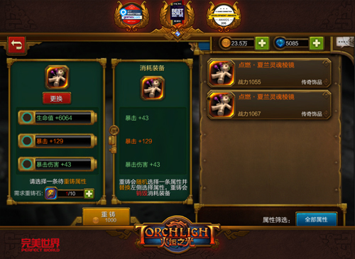 随机装备属性 更多收集乐趣 《火炬之光》移动版中的装备有白色、绿色、蓝色、金色、橙色等多种类型,金色和橙色的装备又会分为T0、T1、T2……等多种品质,高级装备中的每一种品质都会有不同的套装,不同的套装类型又会有不同的套装属性。即便是同一种套装的同一个部位,也会有不同的随机属性,对于喜欢收集装备追求更强属性的玩家来说,拥有一套属性完美的套装,将会获得非常强的成就感。 ![]() 装备属性重铸 成就极品装备 辛苦打到的极品装备却拥有不理想的随机属性,确实会让人扼腕叹息,《火炬之光》移动版中重铸玩法,既能够让不好的属性重铸,也能让多余的装备有了新的用武之地,选取想要重铸的属性,用另一件同位置的装备重铸,就有可能将另一件装备上的极品属性转移过来,成就一件属性极品的神装。 ![]() 终极套装效果 引起技能质变 《火炬之光》移动版中的套装类型十分丰富,根据该套装装备的数量,会激活不同的套装效果。而终极套装效果,则能够让技能大幅度提升。例如喜欢召唤系,装配了春之舞为主技能的灵狐,搭配能够让灵狐的春之舞额外召唤一株植物的套装效果,就能在战斗中多召唤一株植物,成为最好的帮手。所以根据套装效果的不同,与技能搭配使用,能够应对更多复杂的情况,让每一个角色的技能拥有更多的可能。 ![]() ![]() 装备搭配技能 成就无限可能 《火炬之光》移动版自由组合搭配的技能系统和庞大的装备系统不仅玩法丰富,具有很强的策略性,也让每一个职业,通过不同的搭配,拥有了不同的流派和玩法,拥有了无限的可能和更多的游戏乐趣。 |