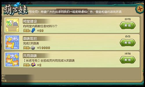 ![]() 任务面板 任务面板目前的三个任务都是关于熊猫村的,完成相应的村庄任务就可以获得奖励。