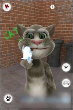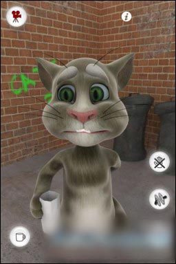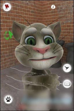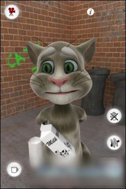左下角:这里有两个特效动作,默认是喝牛奶,汤姆猫会表现出一种很喜悦的表情,切换后是一个爪子刮花屏幕的特效动作,效果非常逼真。