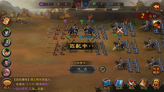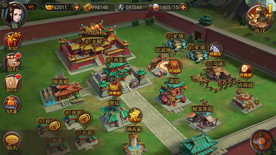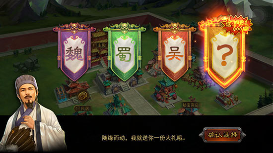 【角色扮演,三分天下】 玩家将扮演主公,在游戏的开始选择加入“魏蜀吴”三国其中一个国家。每个国家都会有自己的特色背景故事,这也让不同的玩家体会不同的故事情节。玩家之后在游戏中所进行的一系列活动都与国籍有关,如可以参与本国国王、丞相、大将军等官职的争夺;如国战胜利取决于该国所有国民占领的城池多少。玩家不再是一人孤军奋战,就算没有熟人一起玩,只要是同一个国家的成员都是可以互相依托的战友。