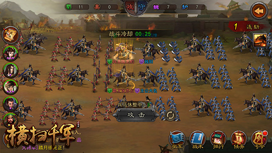 【边看舌战边玩国战,周六晚8点战个不停】 正统三国策略手游《横扫千军》由唐国强代言,凭借富有策略性和趣味性的千人国战备受广大媒体和玩家的喜爱,本周六晚8点国战再度打响,玩家在游戏之余还可以与主播们互动一起参与竞猜获得丰厚的奖励哦。此外,在即将上线的5.0版本中,游戏还会开启个人跨服PVP——问鼎天下,单挑、团战一个都不少,这个冬天,就要让你战个不停!