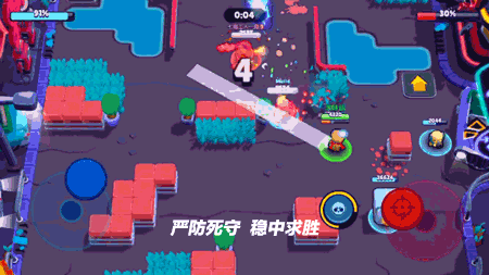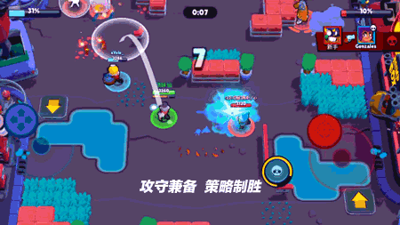 玩法简介 1、金库攻防为3V3对战,是以摧毁敌方金库为目标的游戏模式。 2、对战双方各自拥有一个金库,金库位置固定,不会攻击,无特殊技能。 3、150秒游戏时间内,率先摧毁对方金库的一方获胜。若无任何一方成功摧毁金库,则以金库剩余血量的多少判断胜负,剩余血量相同则为平局。 实战环节 公牛:金库什么的,莽就行了!
