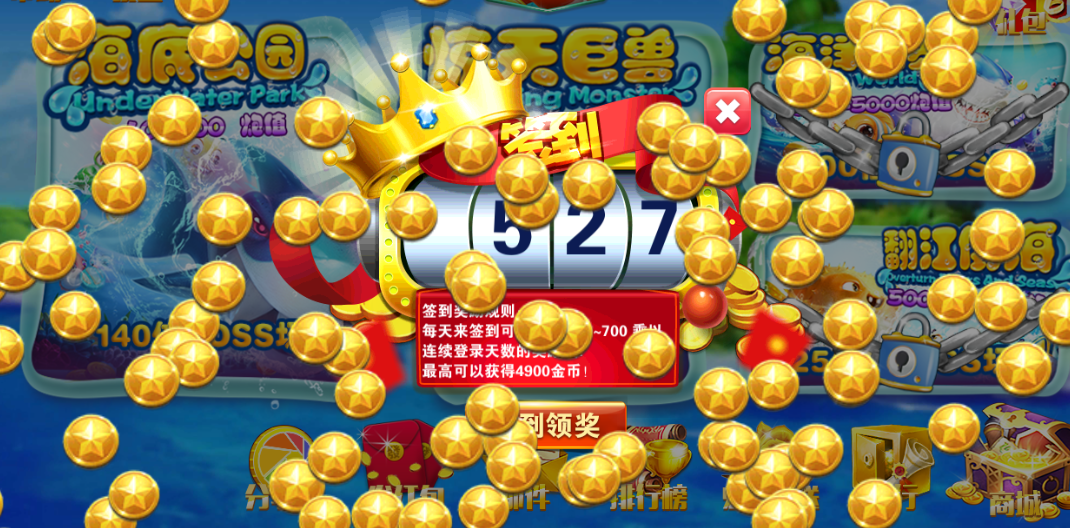 二、《就爱捕鱼》是一款棋乐游最新力作,每天进入游戏领取签到金币,签到金币随着转盘的转动,精彩不断!比一比到底谁才是真真的转盘高手、运气高手!