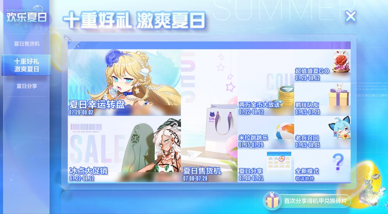 十重好礼陆续放送,助你畅玩一夏 即日起至8月中旬,《机动都市阿尔法》夏日狂欢企划正式开启,十重好礼,激爽一夏,这个夏天就在机动都市畅玩吧!