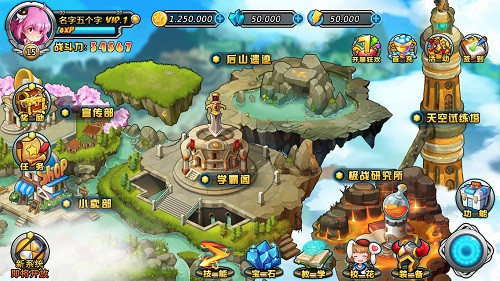 图1:同名动漫校园风格斗手游《绝对领域极战纪》 学院派:校园气息满满身为学生,课还是要上的。学极大堂里主线副本,语文篇、数学篇、英语篇、地理篇;校园里宣传部紧临学生餐厅和小卖铺;校门口抓娃娃机、跳蚤市场⋯⋯扑面而来的校园气息有没有让你恍惚?